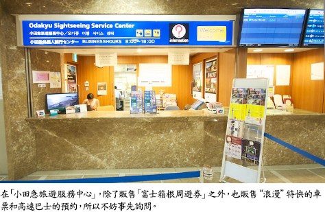 買票可以透過小田急旅遊服務中心的售票窗口或是在旁邊的自助售票機購買。