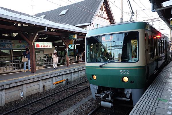 搭乘江之電到傳說中的男兒當入樽(灌籃高手)場景,鎌倉高校前去。